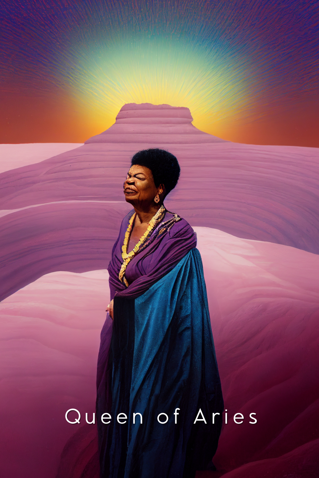 The Queen of Aries card in the Cosmic Cousins Astro Oracle represents the energy and traits associated with the zodiac sign Aries. This card embodies the essence of Aries, which includes courage, determination, independence, and a pioneering spirit. The Cosmic Cousins community has affectionately named Maya Angelou as the Queen of Aries due to her embodiment of these traits.