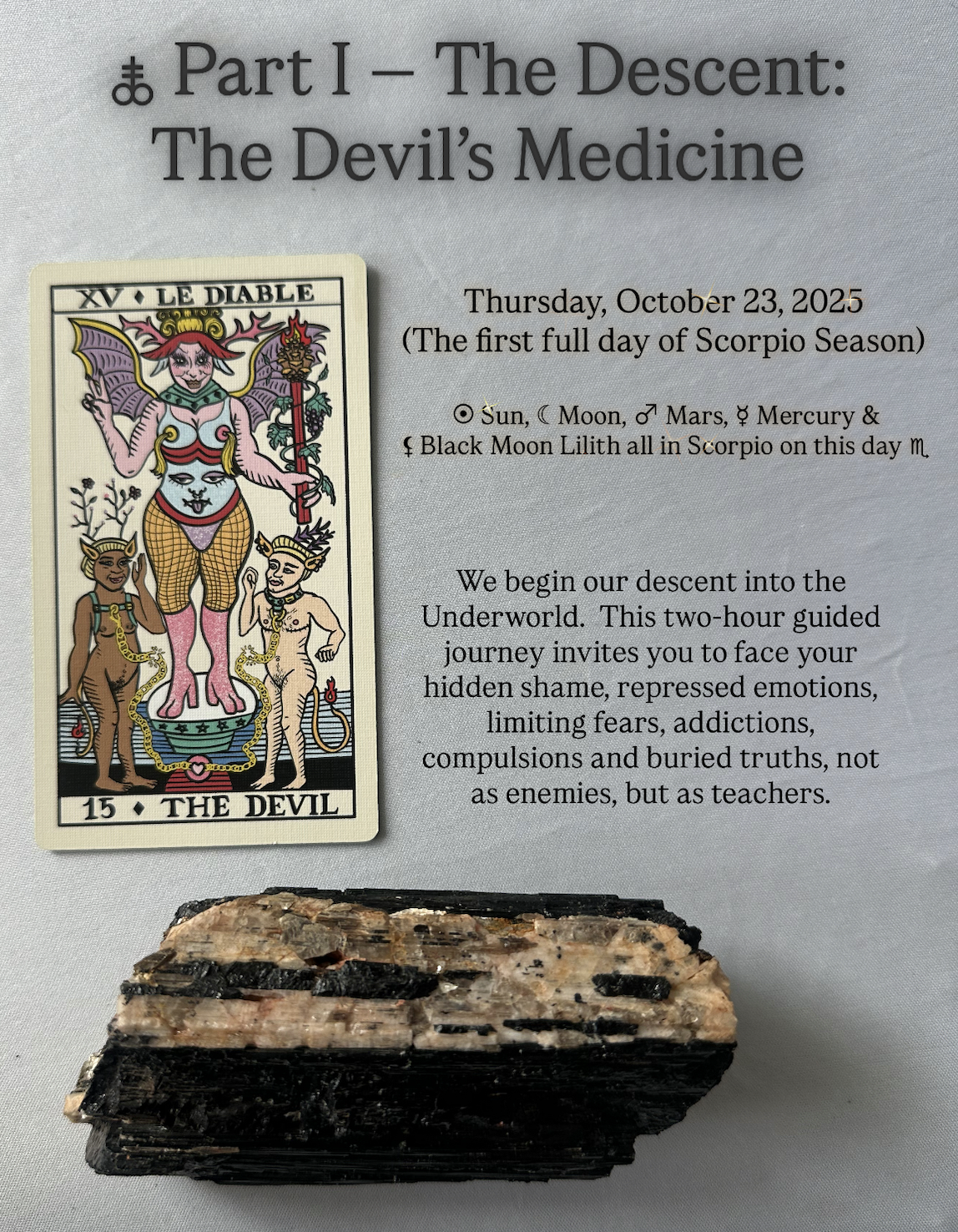 To honor this moment, join me, Jeff Hinshaw, for two-part workshop experience designed to guide you through Scorpio’s sacred mysteries of descent and return: a journey from shadow into soul revelation, held through the archetypes of The Devil and The High Priestess.